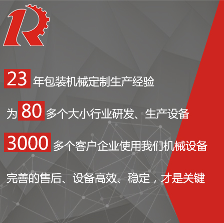 廣州市睿佳機械設備有限公司是國內專業從事自動化包裝機械產品,集研發(fā)、生產、銷售、服務于一體的制造公司,已通過ISO9001:2008質量體系認證,部分系列產品已通過歐盟CE認證。 經過多年的發(fā)展,公司專業生產:封尾機,灌裝機,旋蓋機,貼標機,包裝機,輸送機,噴碼機,灌裝生產線等機械設備。企業以開發(fā)生產包裝機械和訂做特殊包裝機械為主,所生產的包裝機械在同行和客戶中都得到一致的贊賞,以高技術和穩(wěn)定的質量遠銷東南亞和歐美。在國內,也成為多家知名藥廠、食品廠、化妝品廠指定使用產品。 睿佳機械:“想客戶之所想,急客戶之所急”既是睿佳對廣大客戶的承諾也是睿佳的宗旨,睿佳將與時代同步、銳意進取,以更優(yōu)質的服務回報廣大客戶對睿佳的信賴和支持。